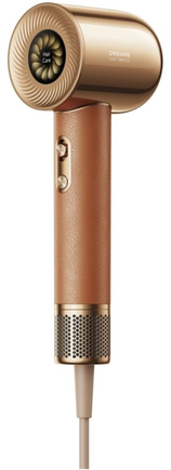 Топовая модель от Dreame — Hair Miracle Gold с 5 магнитными насадками, поддержкой ионизации и режима холодной подачи воздуха. Это не только функциональная, но ещё и очень стильная вещь — фен поставляется в кожаном футляре, на ручке тоже покрытие из кожи.